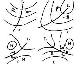 [单选题]图是北半球槽线和切变线的气流分布,其中气流分布错误的为()。A .A图B .B图C .C图D .D图