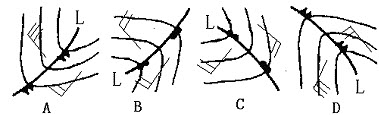 [单选题]图是北半球槽线和切变线的气流分布,请问其中气流分布错误的为()。A .A图B .B图C .C图D .D图