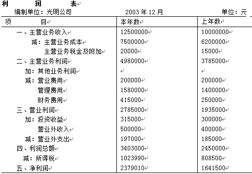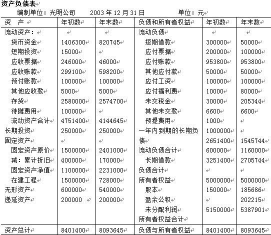 光明公司2003年有关财务资料如下表: