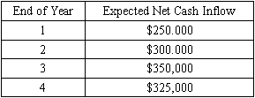 An analyst is investigating an investment project of Hellet Corporation. The investment project with the same risk as the company has the following expected net cash inflows during year 1 to year 4: