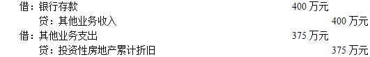 甲公司对该办公楼采用年限平均法计提折旧,预计使用50年,截止2×15年6月30日,已计提折旧16年,预计净残值为零。2×15年7月至12月,该办公楼收取租金400万元,计提折旧375万元,甲公司的会计处理如下: