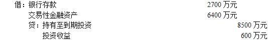 (4)2×15年12月20日,因流动资金短缺,甲公司将持有至到期投资的丁公司债务出售30%,出售所得价款2700万元已通过银行收取,同时,将所持有丁公司债券部分重分类为交易性金融资产,并计划于2×16年初出售。该持有至到期投资于出售30%以前的账面摊余成本为8500万元,未计提减值准备,预计剩余债权的公允价值为6400万元。甲公司的会计处理如下: